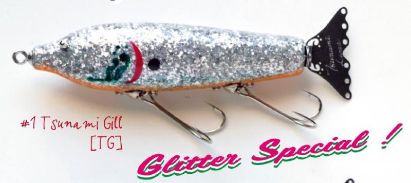 ※シェイプをウッドの1stモデルと同じに戻し、グリッターモデルのためにブランクの比重を以前より軽くしてあります。そのためにウェイトバランスは再検討しました。ウェイトはサーフェイスリグの内側に穴を開けて収納する、ウッドと同じシステムです。