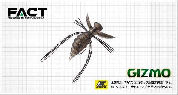 見た目のリアルさだけでなく、アクションも。水面に落ちた(落ちる)虫を福島健の目から見たイメージで徹底的にデフォルメしたギズモ。その根底にあるのが、釣れるバスルアーの代表格であるスモラバ(+トレーラー)と同様のラバー+ソフトボディの一体感。