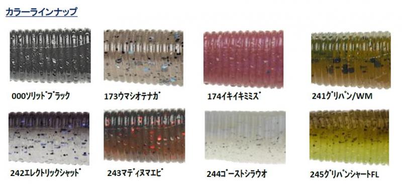 腕が取り付けられているワーム上部は塩無しマテリアル、下部は塩入りマテリアル。上部は腕のアクションを増幅するプリっとしたマテリアル、下部は飛距離や安定した動きを生み出す構造となっています。また上部は塩無しマテリアルなので、フックを刺した時の安定感が良く、不意に針先が出てしまうトラブルを防ぎつつフッキングは抜群です。