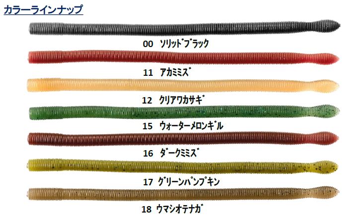 ※エラストマー素材を使用しているため熔融する恐れがあります。他のワームやルアーとは別の容器で保管してください。また通常のワームとは異なり、癖がつきやすい性質がありますので、パッケージ容器にまっすぐ保管するようにお願いいたします。ネイルシンカーを刺したままにすると裂けてしまう恐れがありますので外して保管してください。