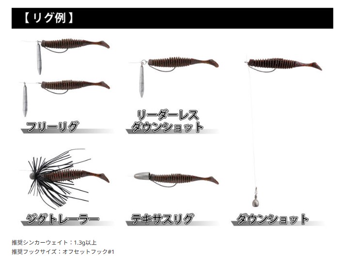 ただダウンサイジングするのではなく適正なボディ形状にすることで、「強すぎず弱すぎない絶妙な波動」を生む反則級シャッドテールワームに進化。