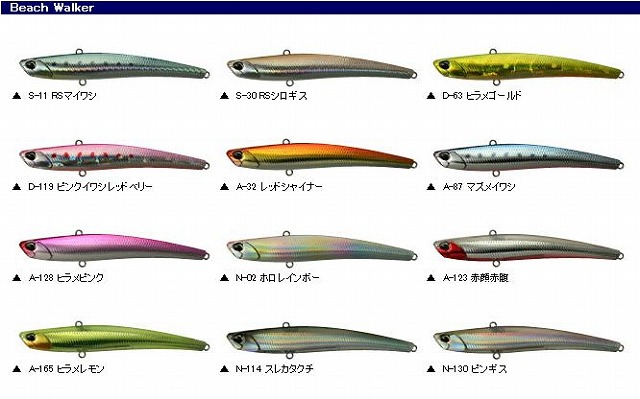ビーチウォーカーバイブはヒラメのメインベイトのひとつであるシコにシルエットを合わせたスリムシェイプ。 安定した飛行姿勢で見た目以上に飛距離を延ばします。