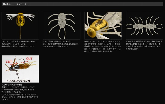 トーナメントシーンを席巻した元祖虫系水面波動フィネスジグ「風神スパイダー」が各パーツを再構築、更にアップデイト!