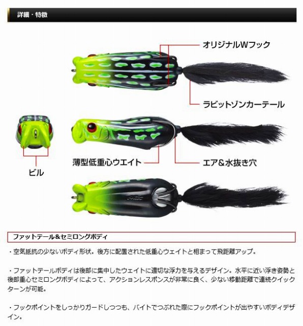 ●移動距離を抑えた連続クイックターンが得意技。アクションレスポンスに優れ一般的なフロッグと比べて、誰でも簡単に動かせます。