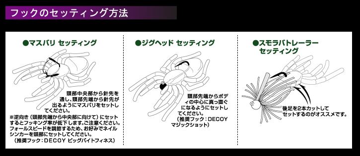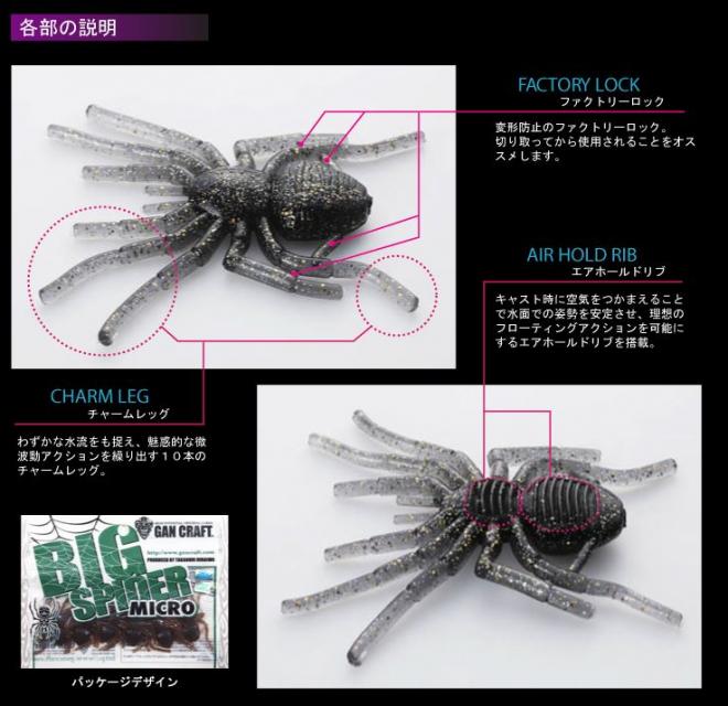 強烈な視覚アピールと魅惑的な微波動アピールを兼ね備えた蜘蛛型ソフトベイト 「BIG SPIDE MICRO」。