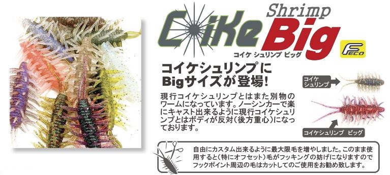 ノーアクションでも、魚を誘う「毛」の威力はそのままに進化したのがCOIKEシリーズ第4の刺客「COIKE・シュリンプ」のBIGサイズ!