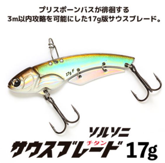 桜が咲く頃には比較的釣り辛い時期になるが、ひと回り小さな17gのシルエットと、サウスブレード独特の高速ミサイルフォールのリアクション誘発効果で、春のナーバスなプリスポーンバスの捕食スイッチを入れてくれます。