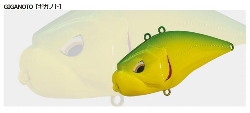 オカッパリで使用するバイブレーションプラグにアングラーが熱望するもの、それは“圧倒的な飛距離”。【ギガノト】はその飛距離に特化して開発されました。XHクラスのロッドで80mクラスの飛距離を得られる飛び抜けた遠投性能を実現しています! そして2つのアクションを選べるツインアイを装備!後方のワイドアイでは、ワイドウォブルの激しいアクション、前方のタイトアイでは、キャスト時に若干バランスが損なわれるため、ワイドアイに比べて飛距離が低下するものの、ややロールの入ったやさしく水抜けの良いバイブレーションが得られます。また「顎(アゴ)アイ」にシンカーを追加することで100mオーバーという未知の飛距離が実現可能となります。
