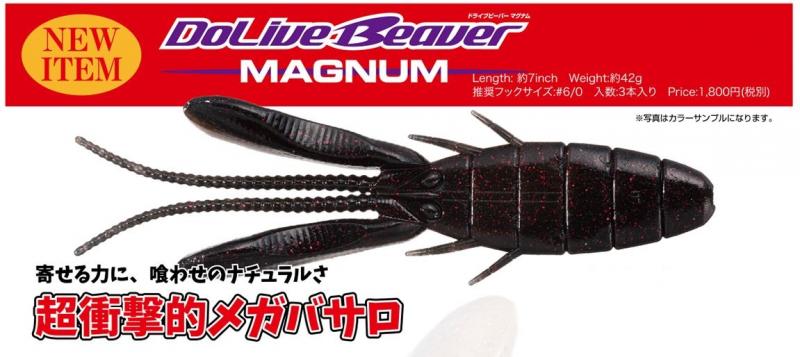 ドライブビーバーは根掛かり難くさとフッキングの良さを両立した扁平ボディーと、あたかも水泳のバタフライのように背腹方向にくねる2本のバサロパドルでデザインされ、生命感溢れるバサロアクションを演出するカバー攻略用ホグ系ワームである。2017年秋の発売以降、幾度もトーナメントでのウィニングルアーとなり、今もなお全国各地で未曾有の釣果を叩き出し続けている次世代スタンダードである。
