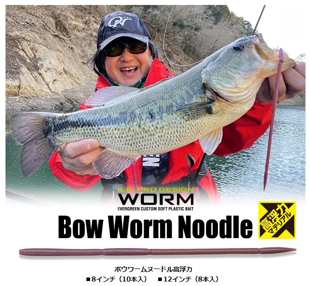 発売以来、数々のトーナメントを制し、各地で驚異的な釣果を叩き出し続けている極細ロングストレート・ボウワームヌードルに高浮力モデルが新登場。