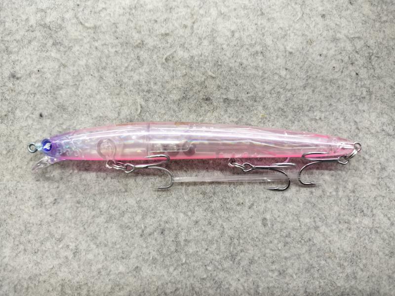 14gとは思えない飛行距離を実現しております。アクションはナチュラルなウォブンロールアクションで、速いスピードからスローリトリーブまでキッチリとバランス良く泳ぎます。サイズ的なインパクトが少ない細身ボディに3本フックシステムを搭載。バイトを確実にフッキングに持ち込みます。