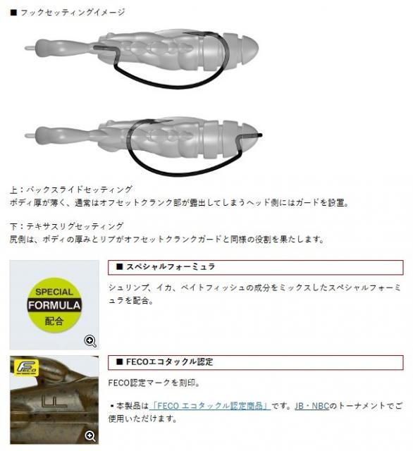 ▪ノーシンカーバックスライド ▪テキサスリグ ▪リーダーレスダウンショットリグ ▪フリーリグ ▪キャロライナリグ ▪ラバージグトレーラー ▪ブレーデッドジグトレーラー