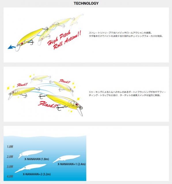 最新のハイドロダイナミクスを融合した特異なミノーシェイプは卓越したスイミングレスポンスと快適な操作性を発揮。NANAHANボディが生み出す軽妙なアクションは、ベイトフィッシュの微小な波動と明滅感を極めてリアルに再現。トゥイッチでは、わずかなロッドストロークで瞬時に軽快なダートを披露。レスポンシビリティの「極み」を追求した次世代のフィネス・ミノーがX-NANAHANです。