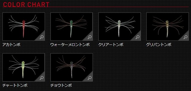 活トンボに求めたのはプレッシャーを与えない極めてソフトな着水。そしてソフトかつ耐久性の高いエラストマーボディに、バランスを絶妙に調整する発泡フロートを配置することで、表面張力で浮びながら水面でもがくリアルな落水したトンボの姿を再現しました。さらにトンボのごとく長尺の羽を備え、移動距離を抑えたピンスポット攻略に最適な仕様が完成。ただ漂わせるだけでもターゲットを魅了するリアルな「存在感」を発揮してくれることはもちろん、わずかなシェイクと連動して発するエラストマーテールの艶かしい波動がスレ切ったバスからも、あと一歩の食い気を引き出してくれる事でしょう。