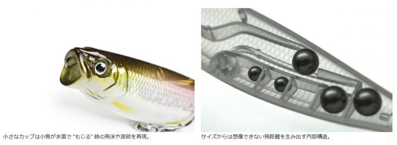 ワカサギが接岸する冬にも釣れるペンシルベイト。 通常、アングラーの力量が問われるペンシルベイトですが、幾度となくバランスや ウェイトを組み直し、コンセプトである「誰もが簡単にバイトを誘発する」アクションを 再現できるように完成させました。小さなカップは小魚が水面で“もじる”時の飛沫や 波紋を再現。サイズからは想像できない飛距離も魅力です。